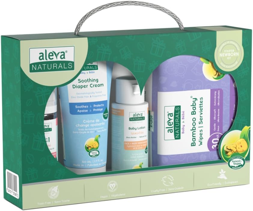 Aleva Naturals Newborn Starter Kit for Baby – Set of Wipes, 2 in 1 Shampoo & Body Wash, Soothing Dia…