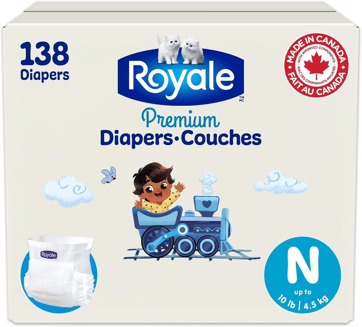 Royale Premium Diapers, Size Newborn (up to 10lb), 138 Count, Disposable Baby Diapers (Packaging may…