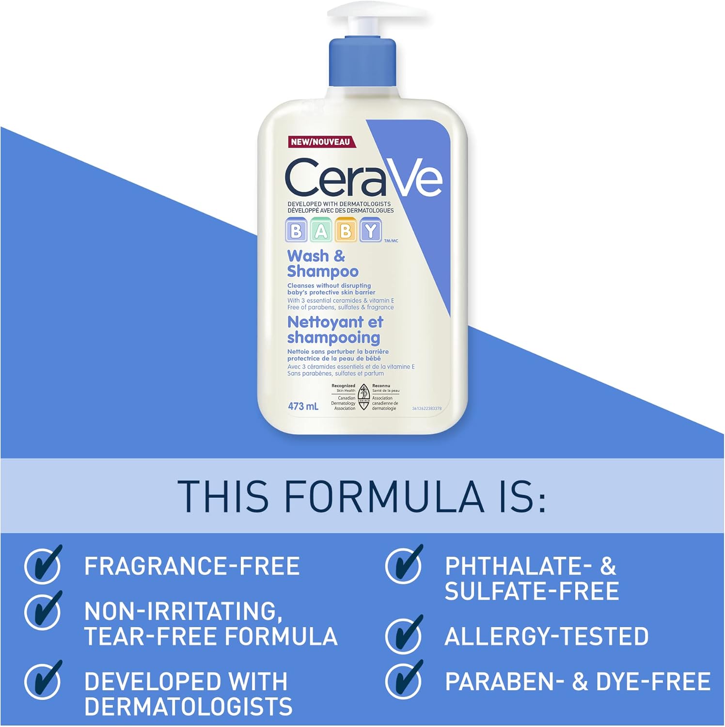 CeraVe Baby Wash & Shampoo Gentle Tear-Free Formula Hypoallergenic, Fragrance Free, Paraben Free & S…